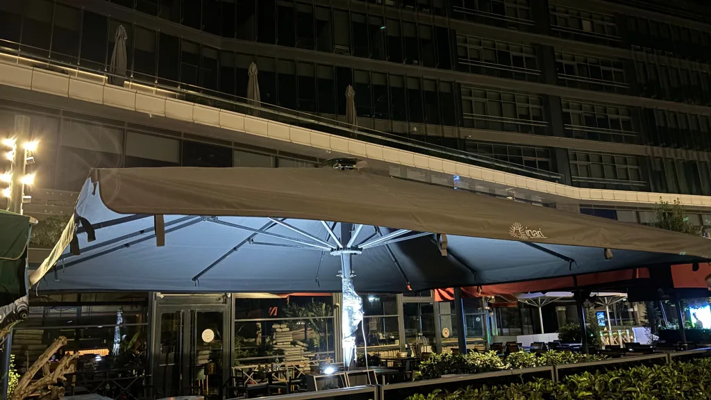 Cafe şemsiyeleri, özellikle yaz aylarında dış mekanlarda müşterilerinizi güneşin zararlı ışınlarından koruyarak keyifli bir yemek veya içecek deneyimi sunmanızı sağlar. Net Branda, farklı boyut, renk ve tasarımlarda cafe şemsiyeleri üretmektedir. İşte Net Branda’nın cafe şemsiye modelleri hakkında detaylı bilgi: